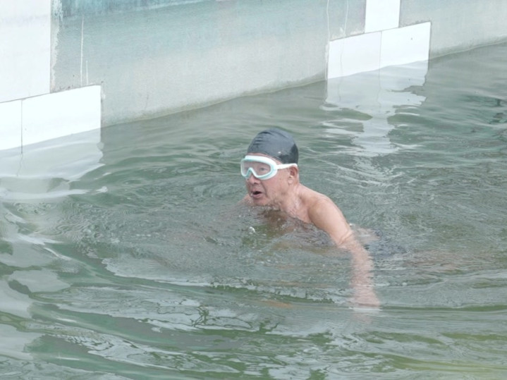 每天骑车去, 全勤王! 90岁清华老练坚捏冬泳15年